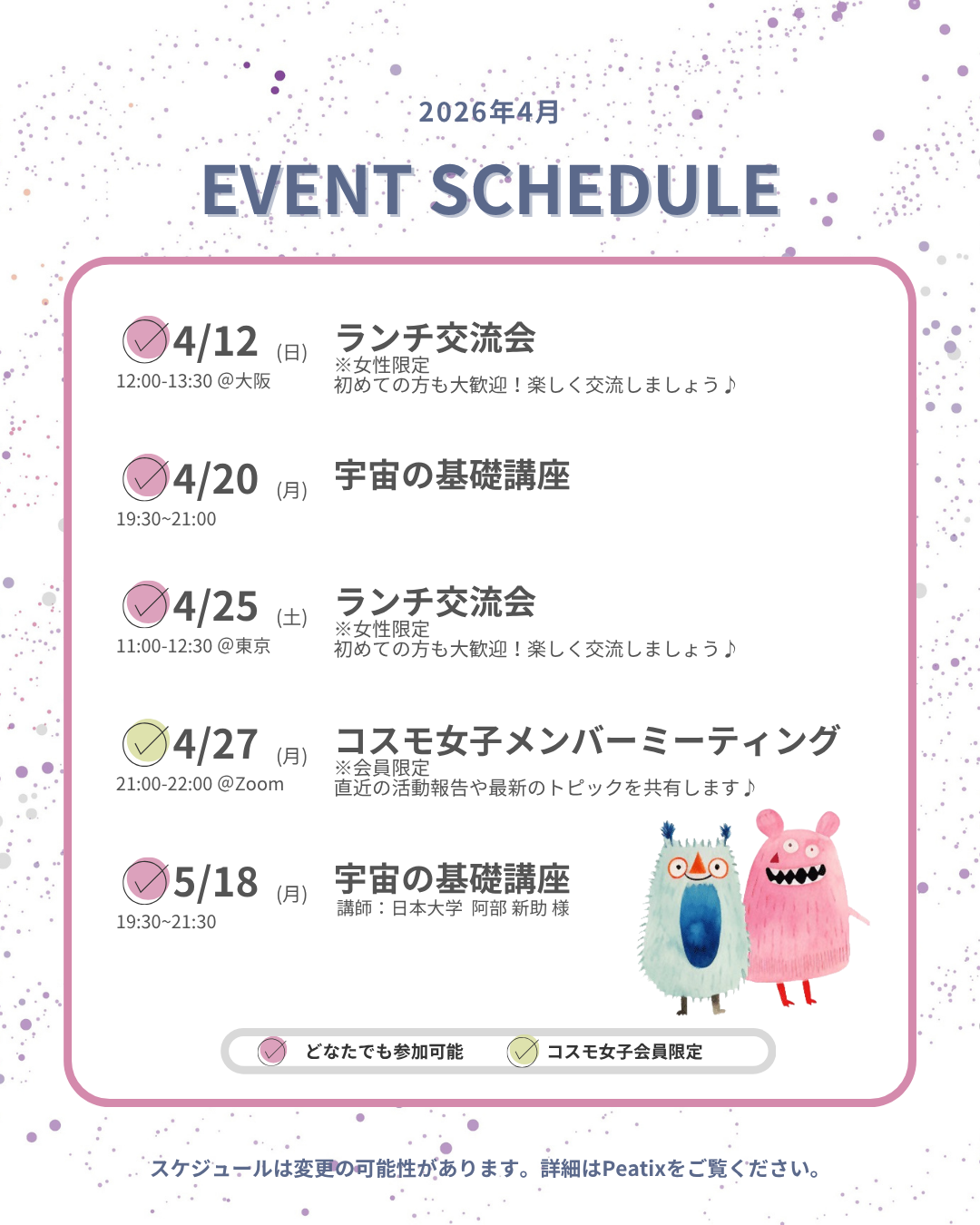 「宇宙の基礎講座」などのイベントはアーカイブがございますので、後からでも視聴可能です。
